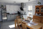 Im Erdgeschoss befindet sich der großzügige Wohn- und Essbereich, die voll ausgestattete Einbauküche,